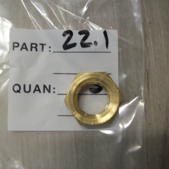 Small and Medium driveshaft impeller nut. 5/8-18 brass. Replaces Outboard Jets part number 22.1. Fits small and medium pumps that use a retainer washer (nut drilled for cotter pin). If you are unsure which shaft nut is correct for your application please email, call, text or send us a message thru social media and we'd be happy to confirm the correct part number for you! 573-529-3849